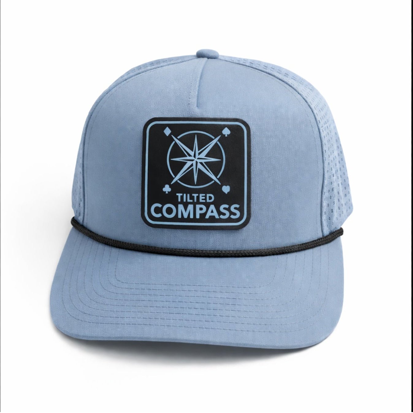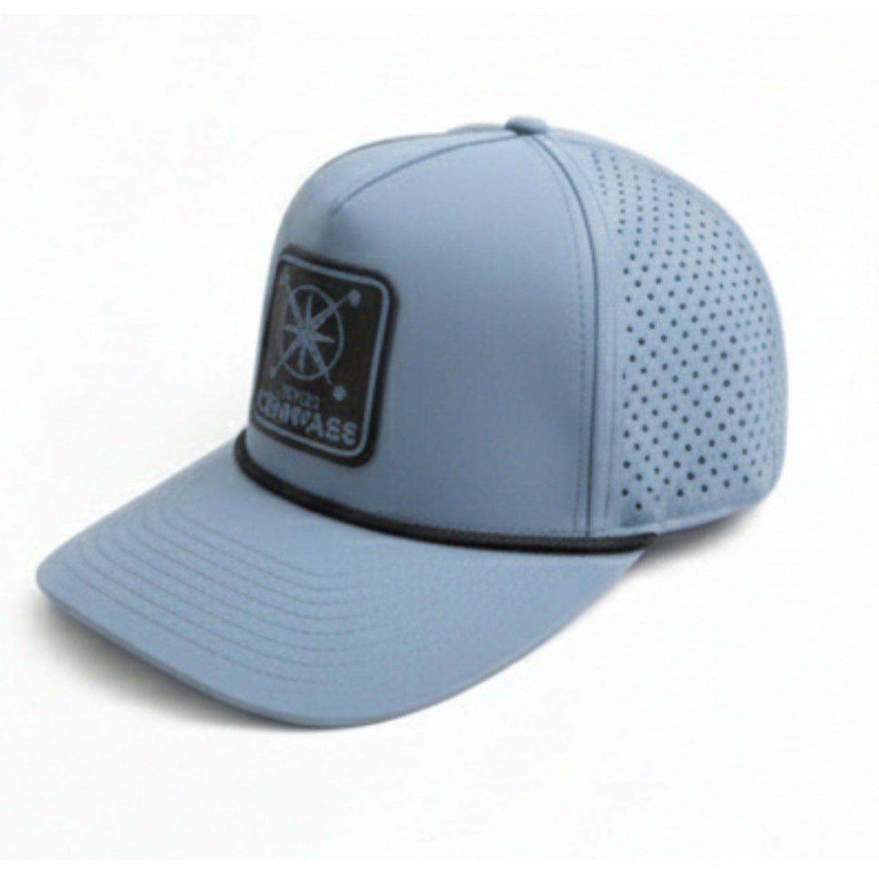 A modern performance take on a classic rope hat. Built with a structured front, breathable perforated panels, and an adjustable snapback for all-day comfort. Finished with our matte black Tilted Compass rubber patch featuring light-blue detailing to match the hat’s colorway.